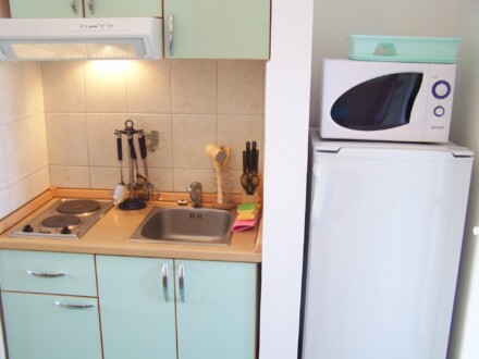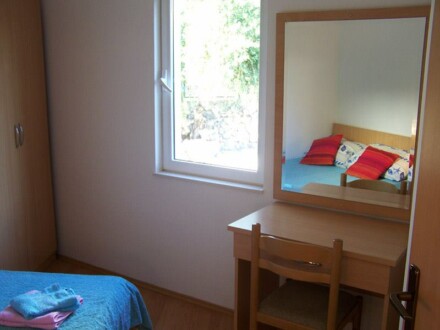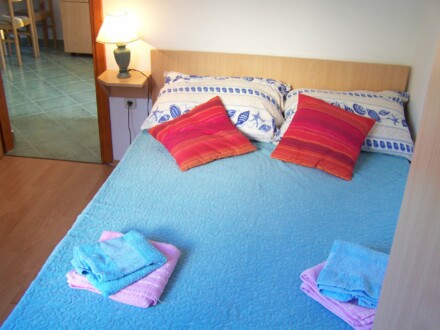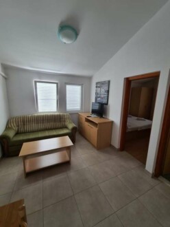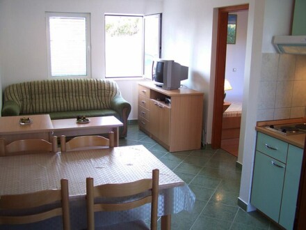 1 kupaonica s tuš kabinom i prozorom, 1 spavaća soba s bračnim krevetom s direktnim izlazom na terasu, dnevni boravak s velikim kaučem na razvlačenje za 2 osobe, kuhinja s mikrovalnom pećnicom, klima uređaj, LCD TV, internet, namještena terasa.